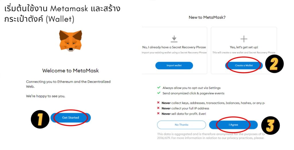 1. กดปุ่ม Get started > Create a wallet > I Agree