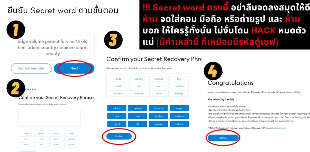 5. ยืนยัน Secret word ตามขั้นตอน