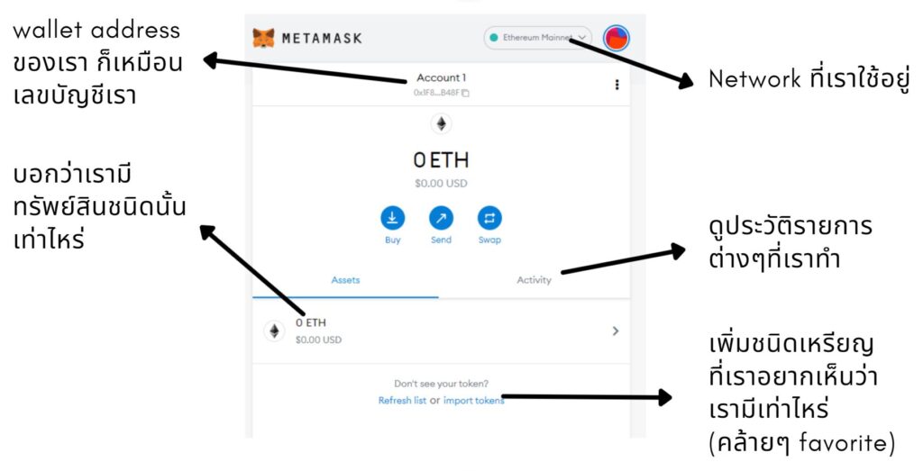 คำตอบคือ : เพราะเริ่มต้นกระเป๋าเราจะโชว์แค่เหรียญหลัก ของ Chain นั้นๆ แม้ว่าเราจะมีเหรียญหลายชนิด metamask ก็จะไม่ได้ขึ้นโชว์ เหมือนเราต้องมาตั้ง favorite เหรียญ ให้โชว์จำนวนในกระเป๋าเรา (การที่ไม่โชว์ไม่ได้แปลว่าไม่มี)